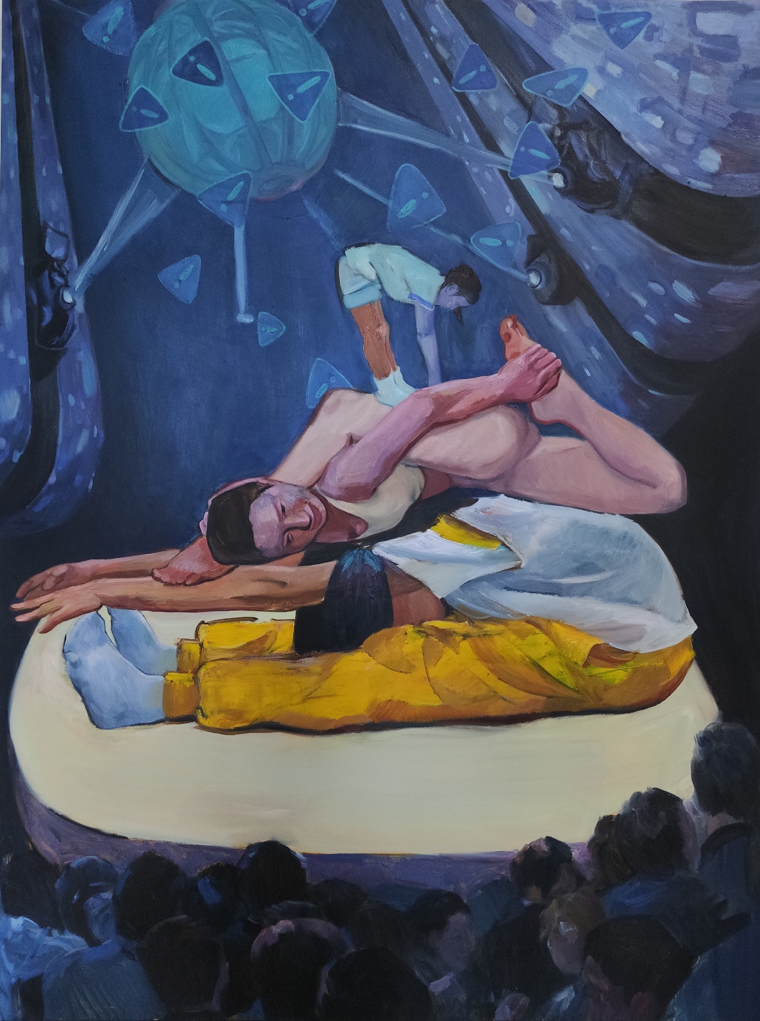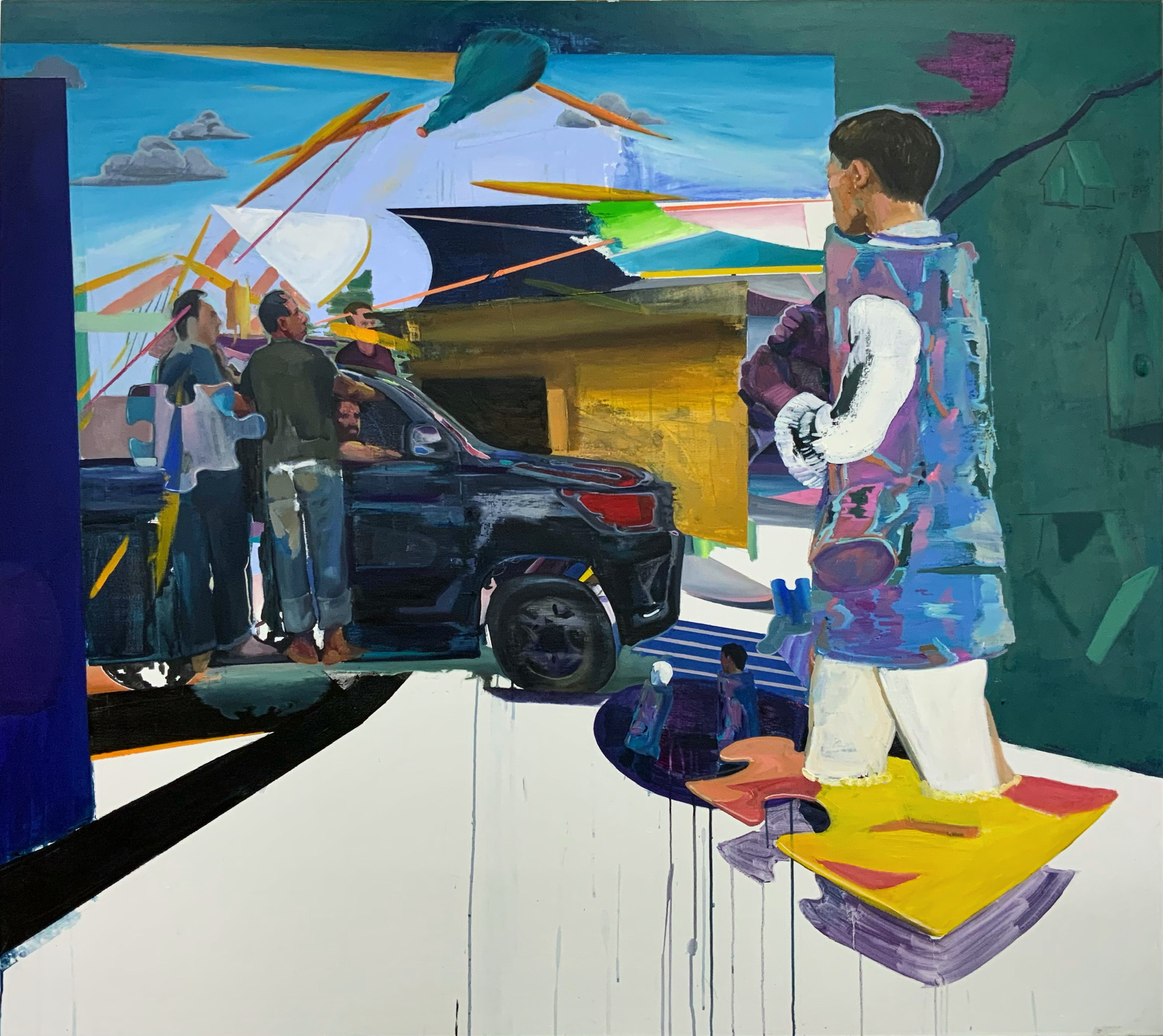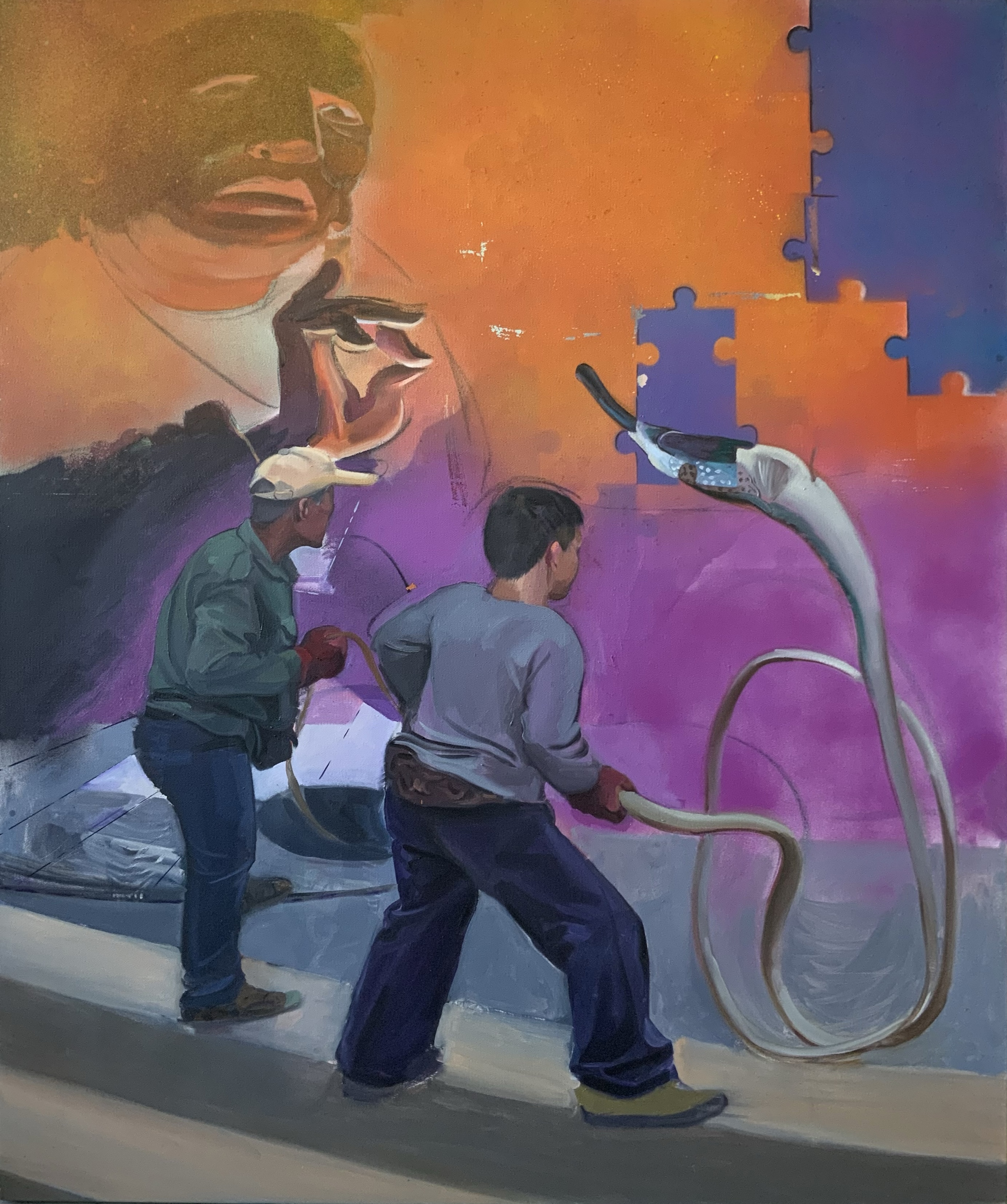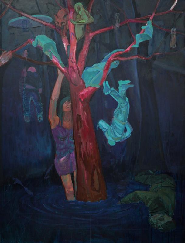 研究圖像與語言符號中的內部感性經驗,以主觀視角,營造多維度的視覺結構,通過“寓言詩”的繪畫方式表達對生存狀況、精神訴求的隱喻。在畫面中,場景與現實不再發生直接關聯,也不具有明確的意義指涉,它們的存在,是含混的詩意,在意義的縫隙中斷裂重構。