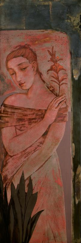 2019年8月漆畫《花里春風未覺時》入選第十三屆全國美展。