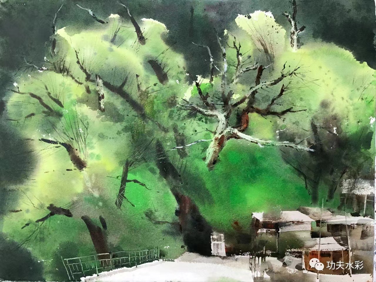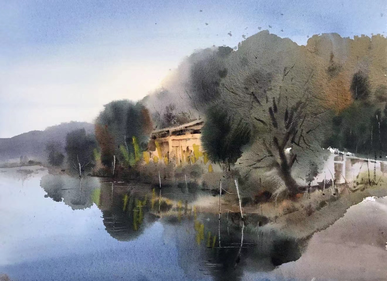 2018年水彩畫《掩映綠水間》參加“2018首屆中國水彩研究在線年度作品展”