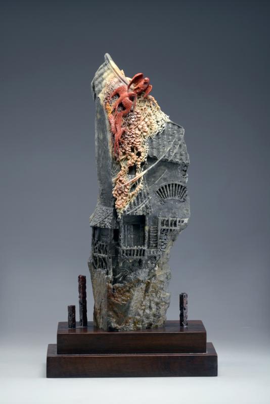 同年壽山石作品莆田展《古寨印象》獲福建省第十屆工藝美術精品“爭艷杯”大賽金獎。