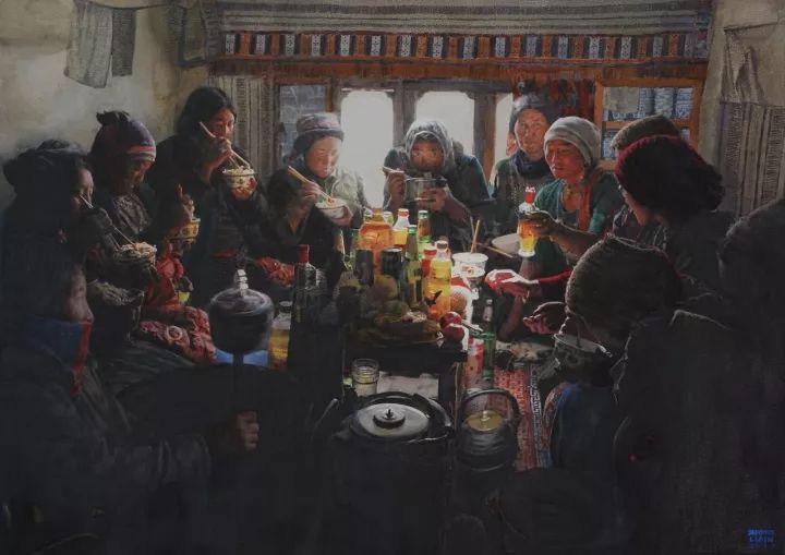 《藏鄉午飯》水性材料 148.5x105cm 2017年