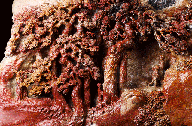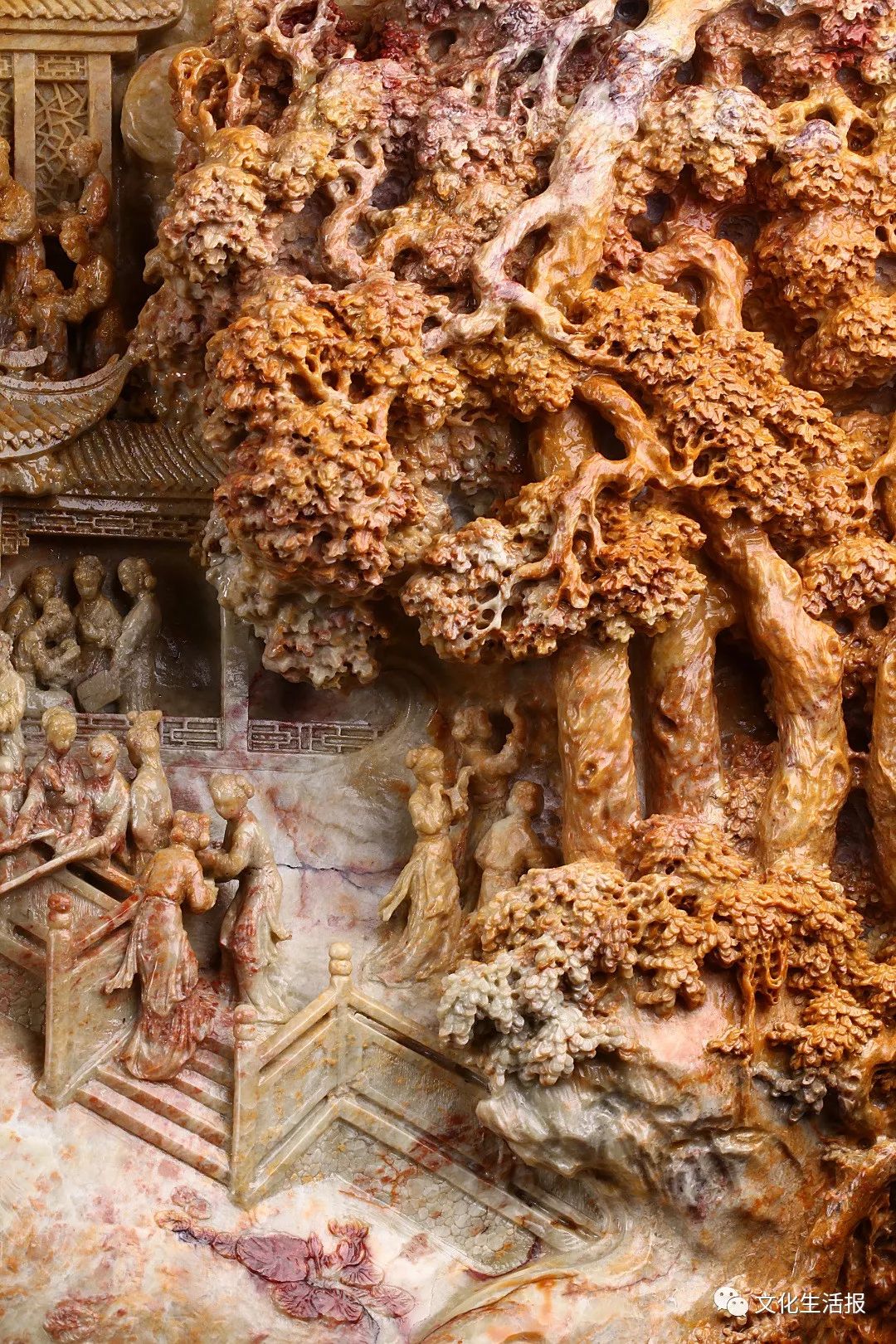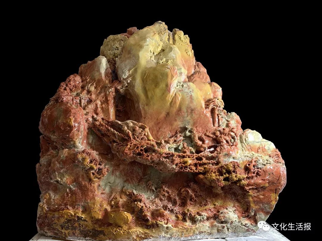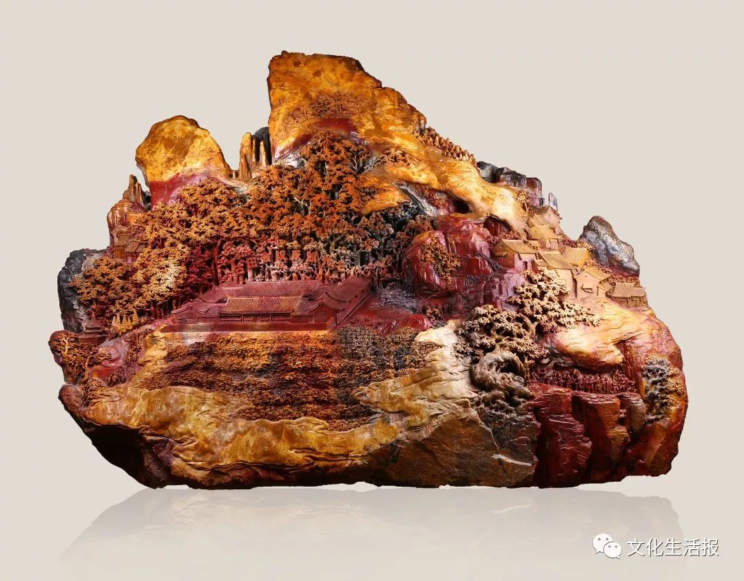 這件大作,是對壽山石雕刻藝術的一次拓展與創造,開拓了過去三百年來的具象與細作之路,雕出了宏偉氣象。此件作品前后耗時兩年有余,是林飛先生的心血之作,也是他對壽山石藝術長期思考探索的智慧呈現,作品很充分地展現出林飛先生高超的雕刻工藝水平,更展現出林飛先生在造型與結構上的塑造能力,展現出他的審美眼光和文化素養。“天一半,人一半”,這是他對壽山石藝術謙遜的獨特見解,而這件作品實是對他獨特見解的最好詮釋。