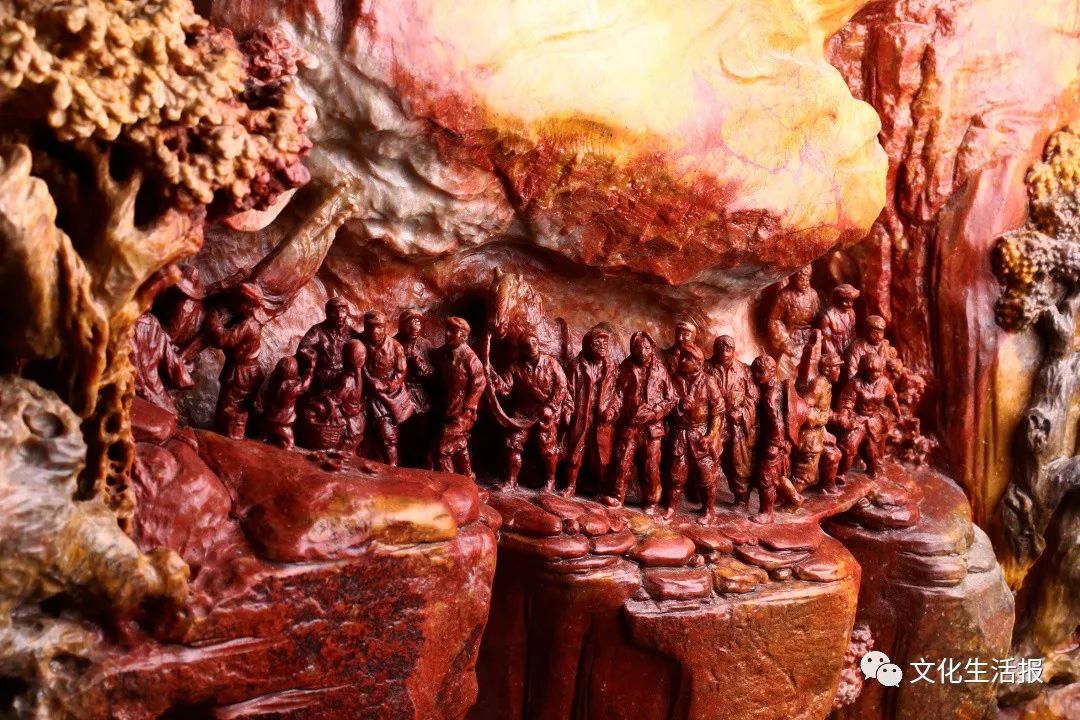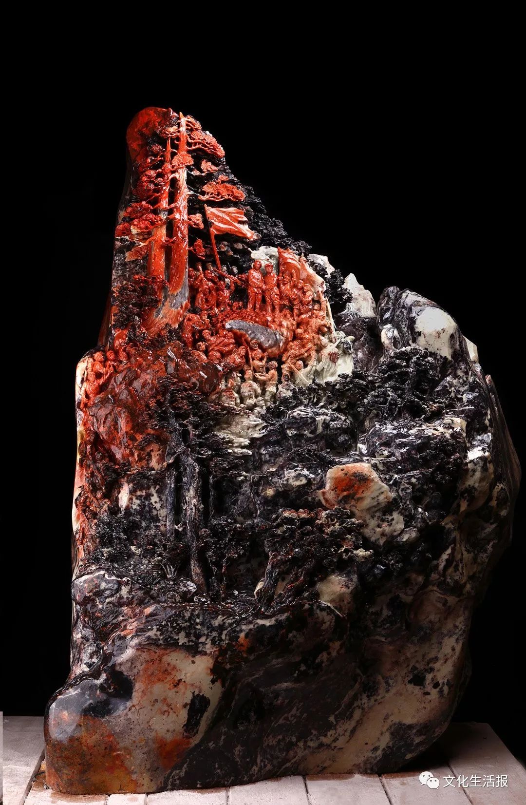 今年上半年,在省里領導的倡議和支持下,我和同仁們策劃組織了在中國美術館舉辦的“壽山石韻”大型壽山石藝術展,從征集的作品里可喜地看到,壽山石界的同仁回歸文脈后,在藝術創作上的轉變和在藝術價值取向上的正道回歸,這也是在當下民族文化自信不斷增強的時代精神感召下的一種理性回歸。而在中國美術館的展覽上,林飛先生的大型主題雕刻作品《古田會議》,直接被安放在中國美術館大廳重要位置上展出,此件作品在整個展覽上耀眼奪目,很充分地展示了壽山石藝術的魅力和審美高度,更體現了林飛先生的壽山石雕刻藝術的創造力。