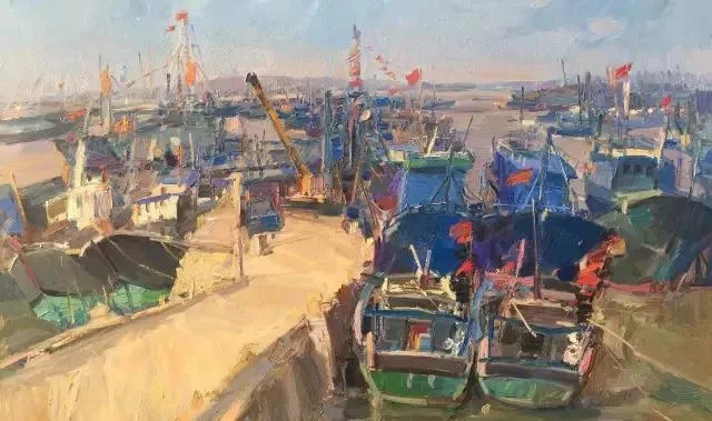 有關于日出題材的油畫創作很多,最知名的要數莫奈的日出印象。油畫自西方而來,經過歷年歷代,在全球文化交匯的情境中,中國的油畫藝術家不斷將中國文化主題與思想觀念融入其中,使之也成為了中國畫家表達文化情懷的語言之一。范迪安的這幅日出東海,一方面汲取了西方藝術的營養,同時更意在展現他一貫對于“寫意油畫”的探索。寫意,是中國藝術傳統的重要特征。他認為,寫意油畫是當代中國油畫的一種新的學術現象,也體現了中國油畫家新的文化選擇。