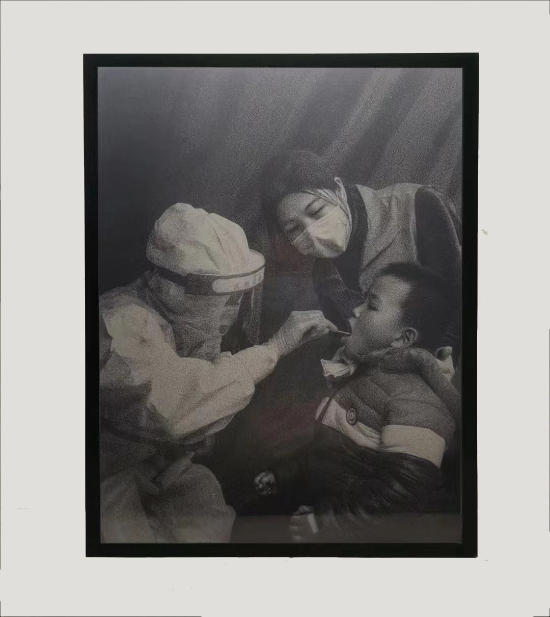 在蔣清蘭的工作室里,形式各樣的影雕作品映入眼簾,一改傳統影雕石板平面的刻板印象。作品《老燈塔的故事》以創意性的構思將古城、茶盤、閩南建筑、燈塔、月洞門、盆景、插花等元素融入了作品。創意設計巧妙結合,令人驚嘆不己。