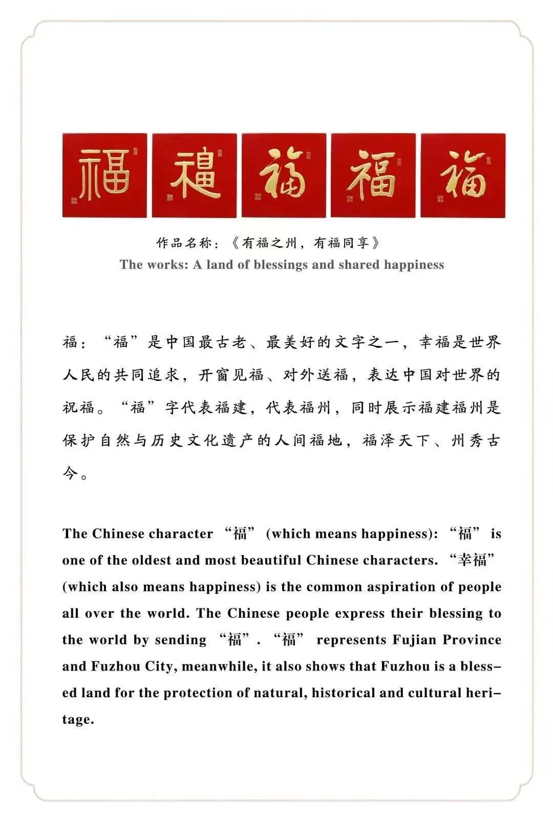 陳吉“五福”大漆書法作品《有福之州,有福同享》以“中國書法”中傳統(tǒng)的篆、隸、草、楷、行五種書體與“福州脫胎漆器髹飾技藝”的跨界融合突出展示中華文化遺產(chǎn)的博大精深、數(shù)千年文化積淀的厚重與魅力。