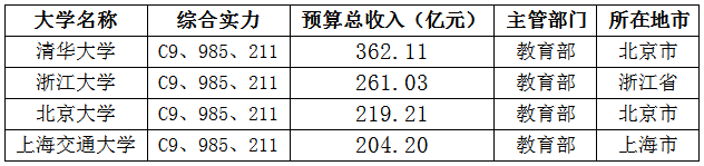 表-1 2022年全國高校經(jīng)費統(tǒng)計前4名高校