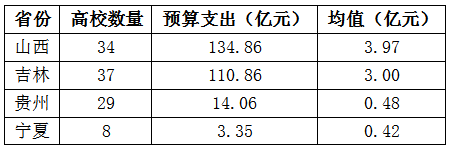 表-3 2022年山西、吉林、貴州、寧夏高等教育經(jīng)費預(yù)算支出統(tǒng)計