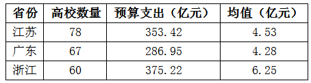 表-2 2022年江蘇、廣東、浙江高等教育經(jīng)費預(yù)算支出統(tǒng)計
