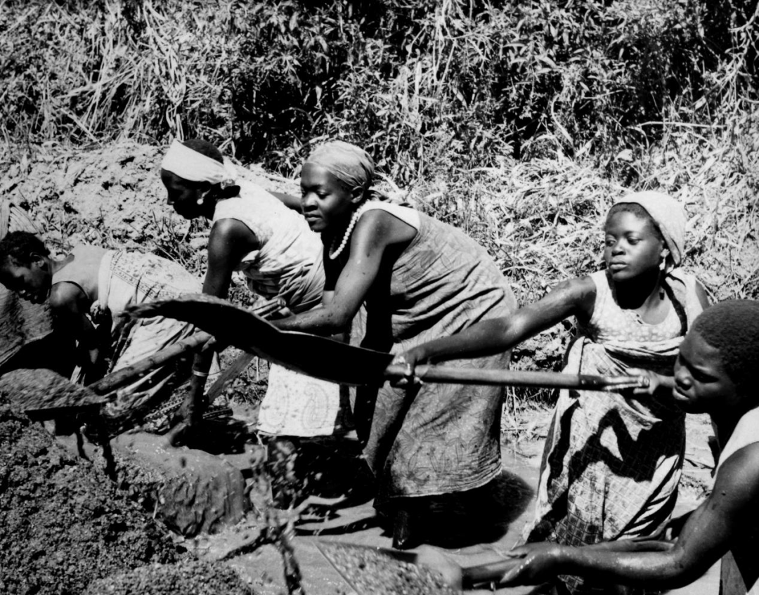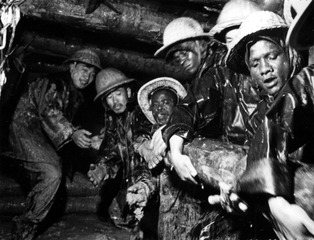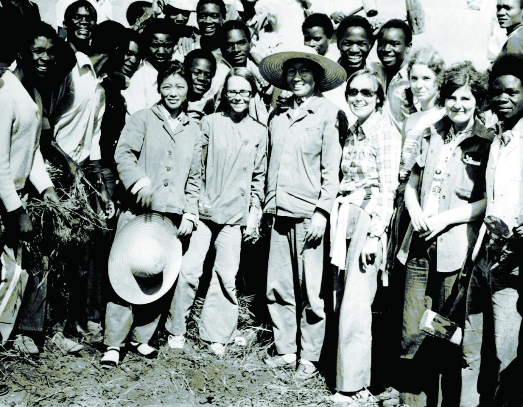 姆比卡中學(xué)師生參加工地勞動(dòng)(與外援職工合影)