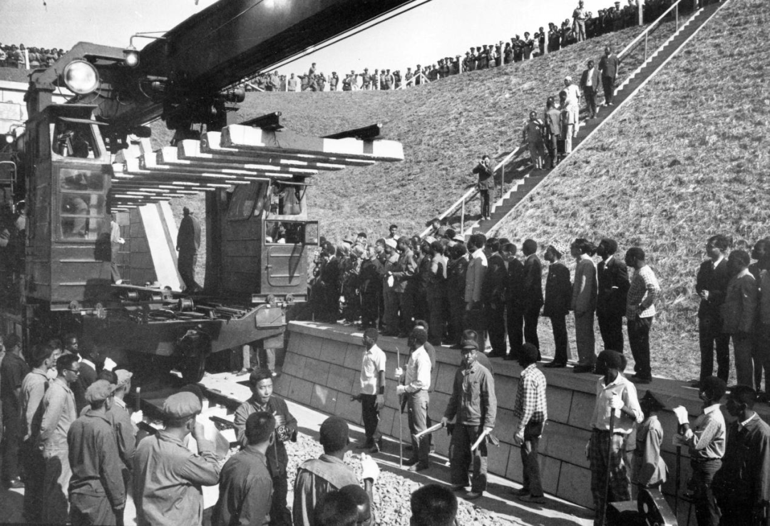 坦贊鐵路交界處鋪設(shè)鋼軌
