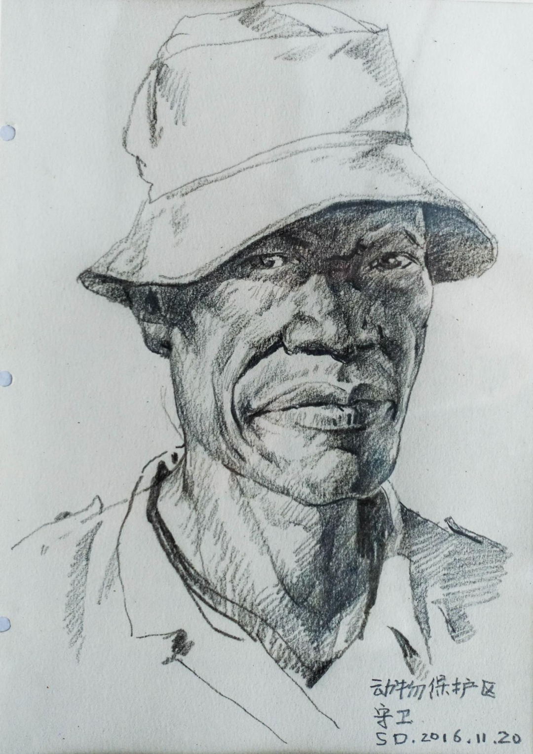 動(dòng)物保護(hù)區(qū)守衛(wèi),李舒弟,速寫,39×54cm,2016年