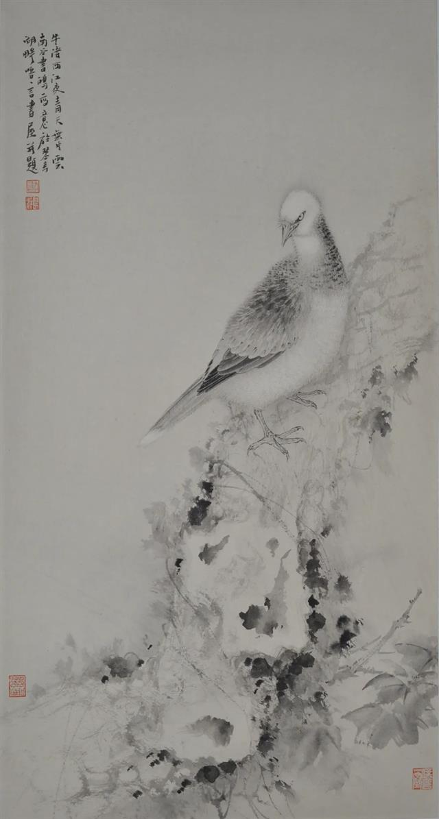 楓樹棲鳩 ║ 66cm×33cm ║ 紙本水墨 ║ 2020年