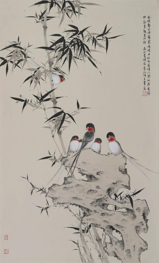 竹石群燕 ║ 97cm×58cm ║ 紙本水墨 ║ 2021年