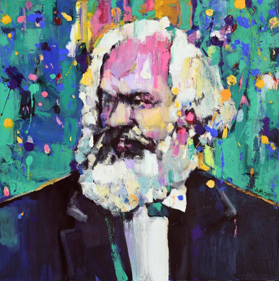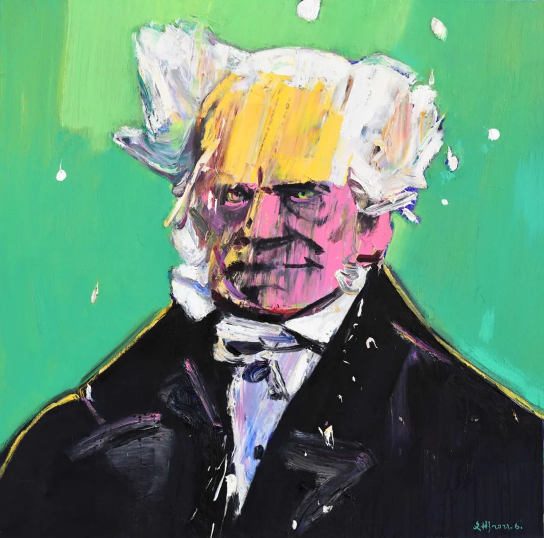剛才王端廷老師說寫生對我繪畫語言的影響很大,確實如此,多年的寫生經驗讓我能快速生動地捕捉人物形象,這些年我也在探討圖像與繪畫的關系,所以又勢必要突破寫生的局限性,我在這批哲學家肖像的用色和造型上都在追求更主觀性的表達,繪畫性與當代性是我始終追求的。