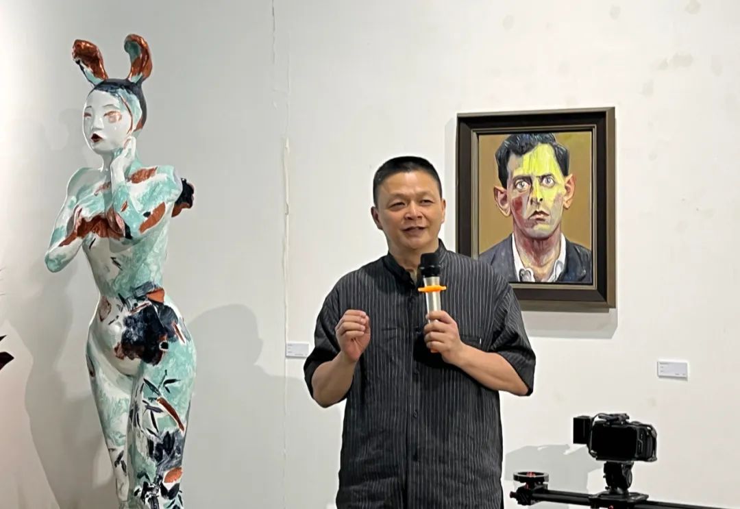 今天參加研討會的嘉賓都是在藝術界和哲學領域很有影響的人物,我給各位也畫了水墨肖像并送給大家。我畫肖像在某種意義上是希望能畫出這個時代中國知識分子的精神相貌,這和我的《朋友圈》系列的創作理念是一脈相承的。我這次展出的作品有油畫、雕塑和水墨,我在藝術上的跨界嘗試體會到造型藝術在本質上是相通的,而當代藝術重要的是問題表達,手段應該是開放、多元而自由的。