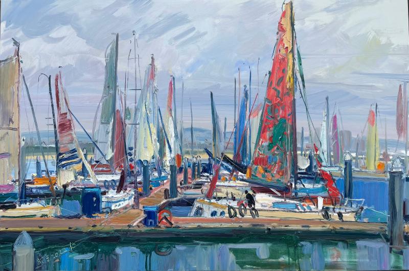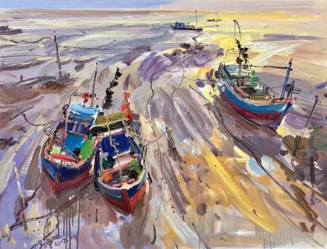 郭寧是活躍在中國油畫和水彩畫界的雙棲畫家,福建美協副主席,福建省油畫學會副會長,福建水彩藝委會主任,泉州畫院院長。頭銜很多,但作為朋友我并不在意他的這些世俗功名,我敬佩的是郭寧兄胸襟豁達的性格和有口皆碑的好人緣。依我所見,郭寧兄并不世故圓滑,從他豪爽率真的笑聲中和質樸憨厚的面相里,我感覺到的是他本性上的寬厚與善良,他是一個讓人感到溫暖放松的好朋友,一個純樸熱情的好畫家。