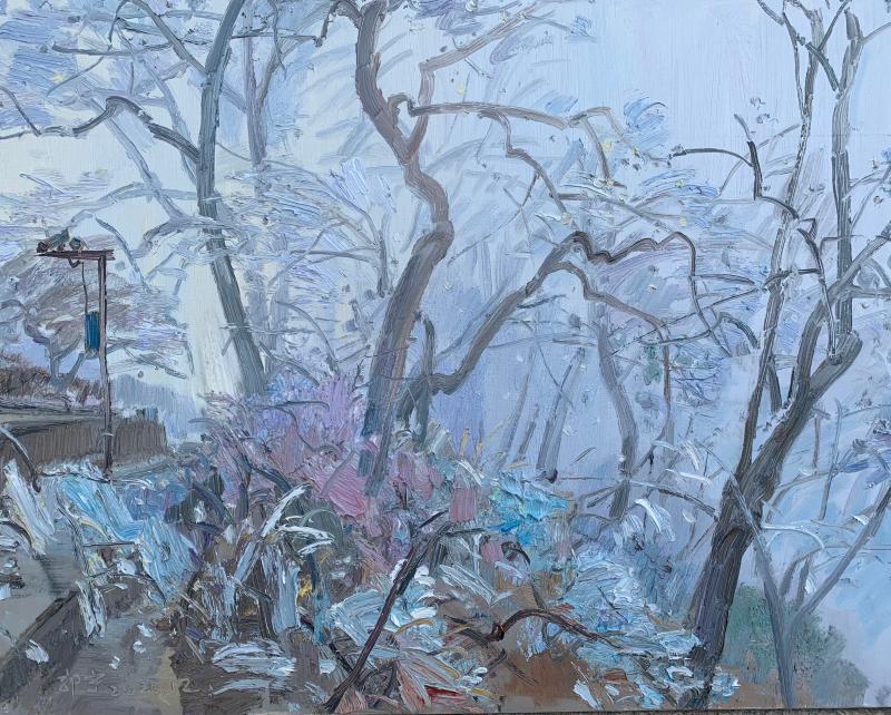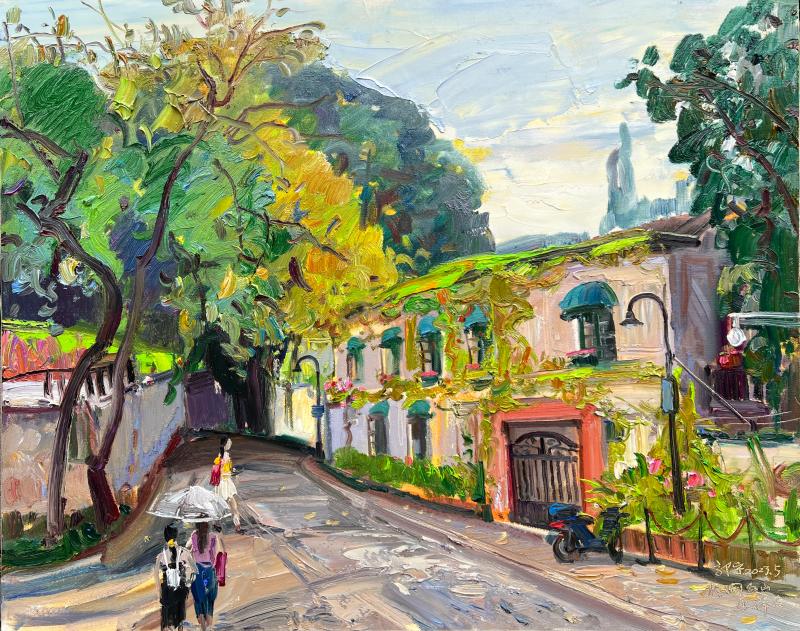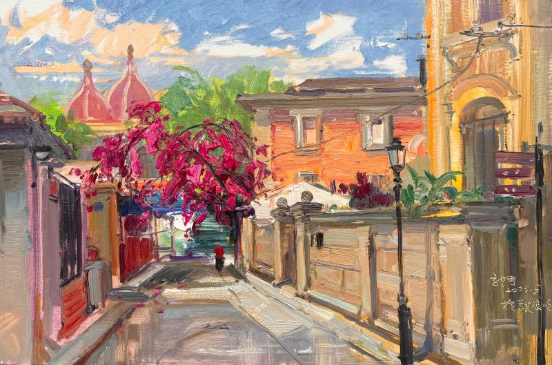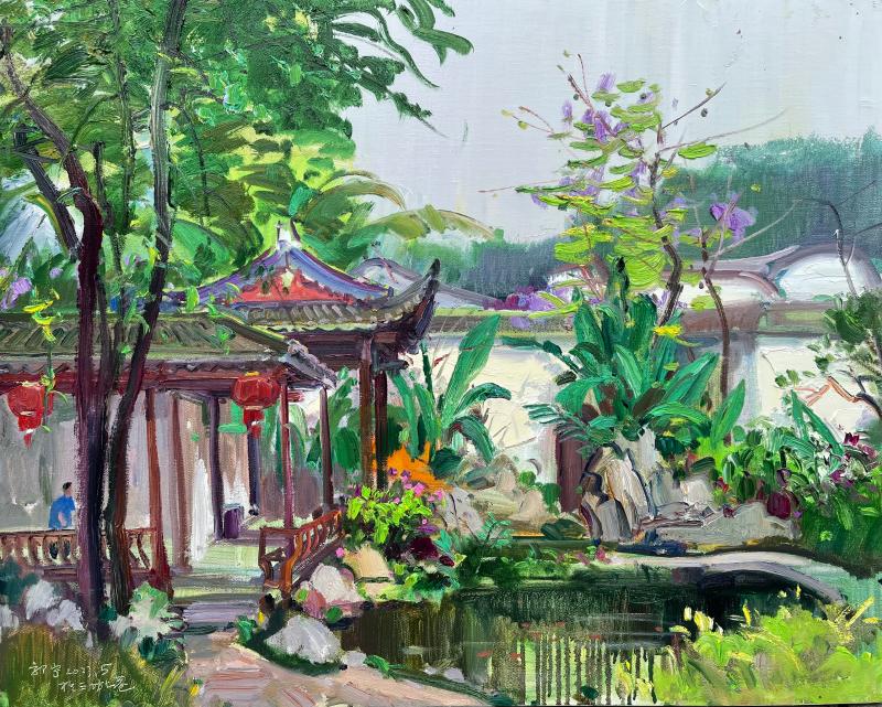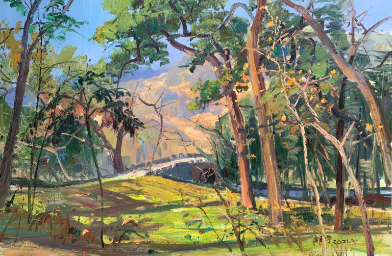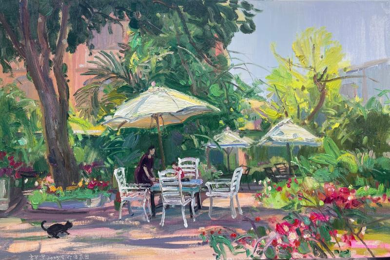 我和郭寧兄是幾十年的老朋友了,學生時代他是高我幾屆的優秀學長,1998年我們在天津美院舉辦的法國畫家賓卡斯材料技法研究班相識并一見如故,后來我們多次在一起參加各類寫生活動。生活中的郭寧風趣幽默,他的記憶力超群,在沒有智能手機的時代幾百個朋友電話號碼他都能隨口說出;他的方向感超好,在陌生城市的地鐵下都能分辨東西南北的能力讓我們驚嘆他有信鴿般的天賦異稟。2015年我們和王輝、任傳文、管樸學等九位中國油畫家出訪法國,一同探訪巴黎郊外的莫奈花園,尼期的馬蒂斯故居、凡高住過的圣雷米精神病院,圣維克多山下的塞尚畫室,也一路寫生看展,感受法國的文化與陽光。郭寧是我們此行的人工導航儀,他能憑道路兩旁的樹木形狀準確說出該地名稱和找到他當年寫生的地方,我們都驚訝他對歐州的熟悉程度,原來他曾在巴黎藝術城做過三個月的訪問學者并多次到普羅旺斯寫生辦展。他跟我說起2005年他初次到巴黎為了看畫展脫離旅游團,迷路后憑著直覺費盡周折找回市郊酒店住地的驚險經歷,以及他到威尼斯才一周卻讓一群在國外多年的留學生跟隨著他到處轉悠的有趣故事。語言不通卻膽大心細的郭寧在希臘、瑞典、挪威等地都留下寫生的足跡。