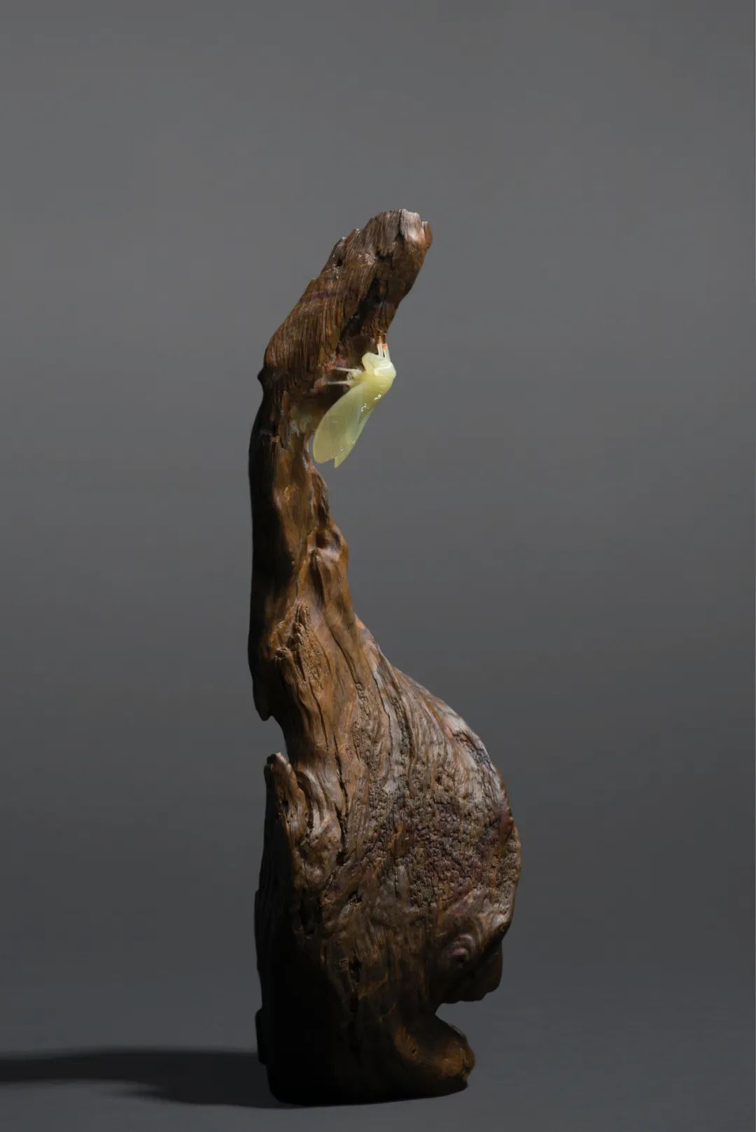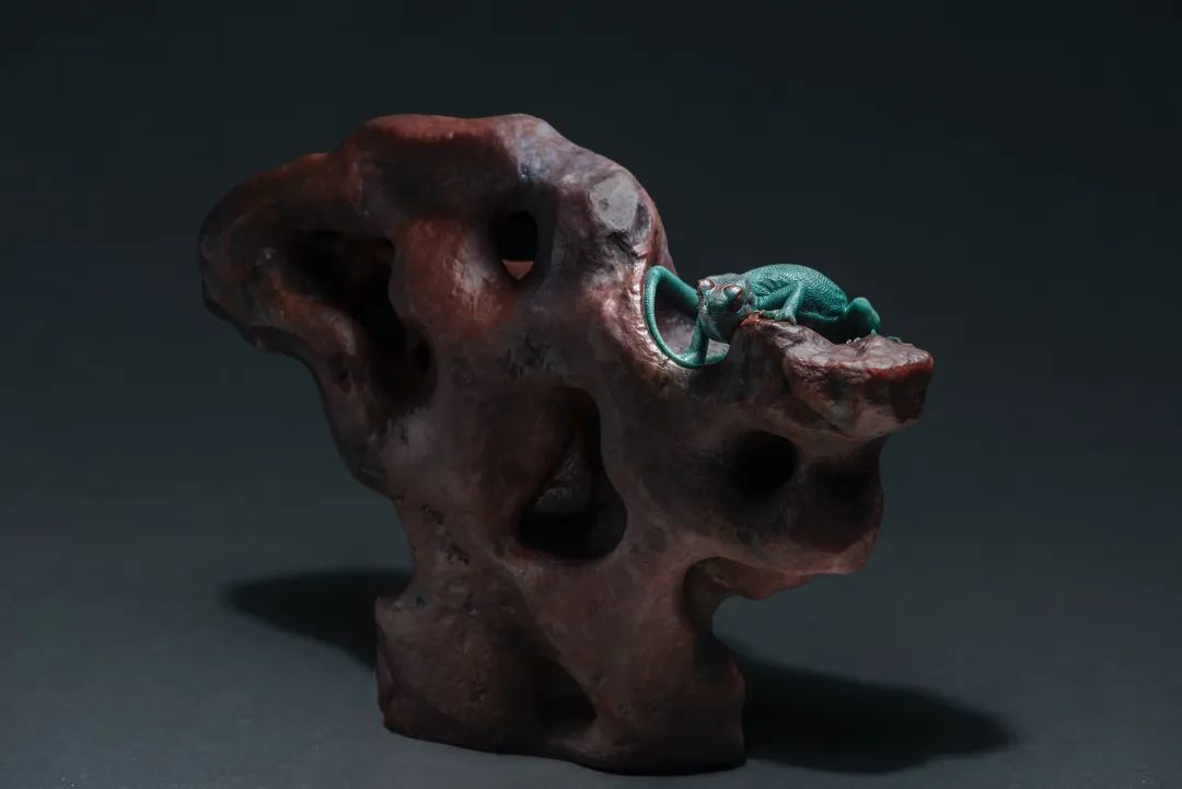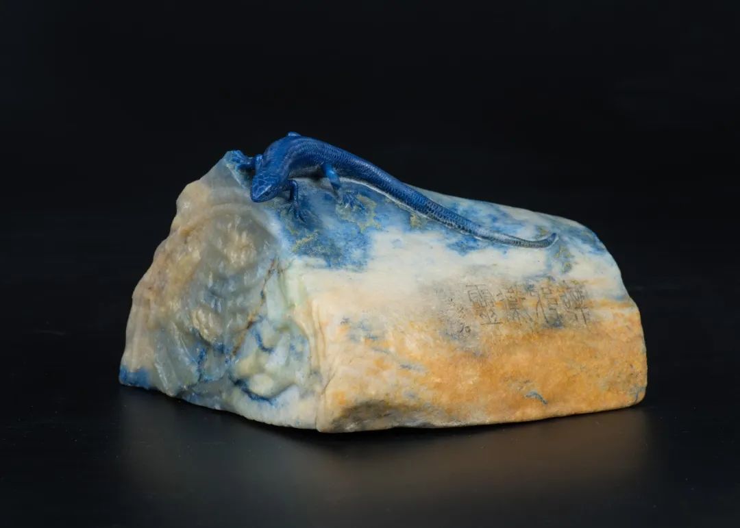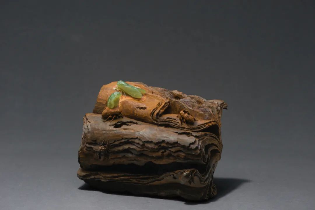 潘驚石的作品風格多樣,文化內涵豐富,尤其精于俏色石雕。俏色之下,一藐小之物,便使物象妙趣橫生,將生命的張力拉滿。所謂留白之法,“大道至簡”。如美學家宗白華所言:“空白乃靈氣往來生命流動之處。且空而后能簡,簡而練,則理趣橫溢?!迸梭@石此法,更是使其作品呈現出大氣之局,頗具韻味。