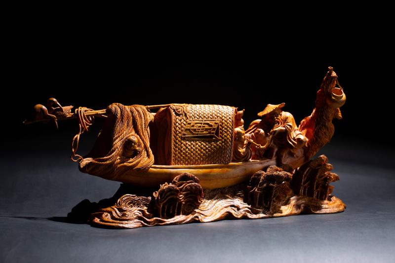 水波澹澹,漁舟回棹。船頭一戴笠漁翁,手拿一桿旱煙,神情悠閑;船尾懸掛漁網,一童子在網間戲耍……在日前舉行的第九屆中國(仙游)紅木藝雕精品博覽會上,竹雕作品《漁翁》收獲了觀眾的眼球和評委的好評。對于它的作者、省非物質文化遺產項目仙游竹雕代表性傳承人王新明來說,矢志竹雕的背后,不僅是安身立命的本領,更是傳承文化的使命。