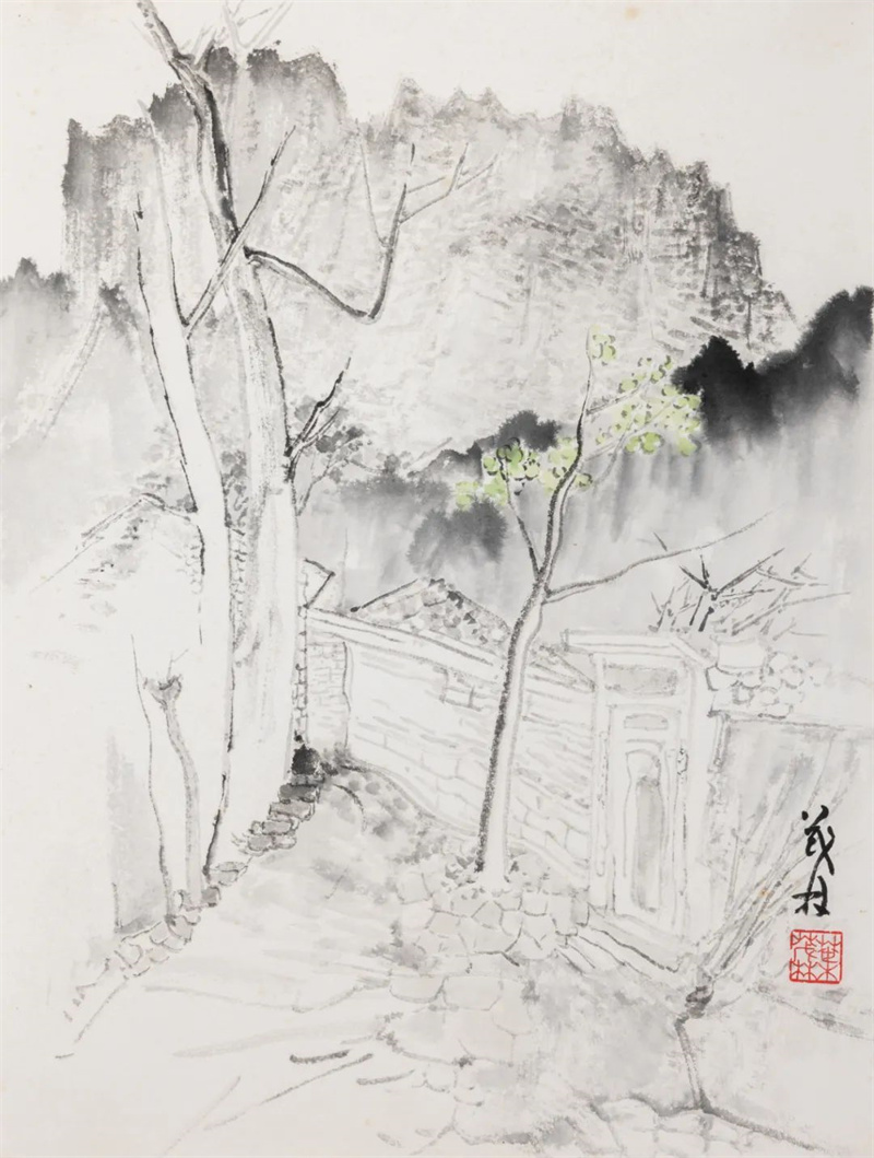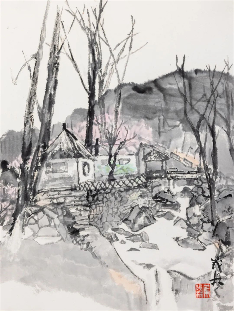 蒙山百花峪村口 ║ 45cm×34m ║ 紙本設色 ║ 2015年