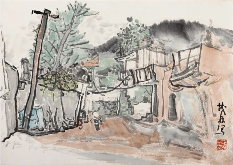 邵武和平古鎮村口 ║ 44cm×31m ║ 紙本設色 ║ 2022年