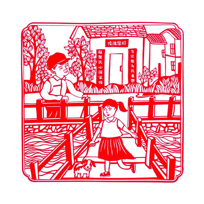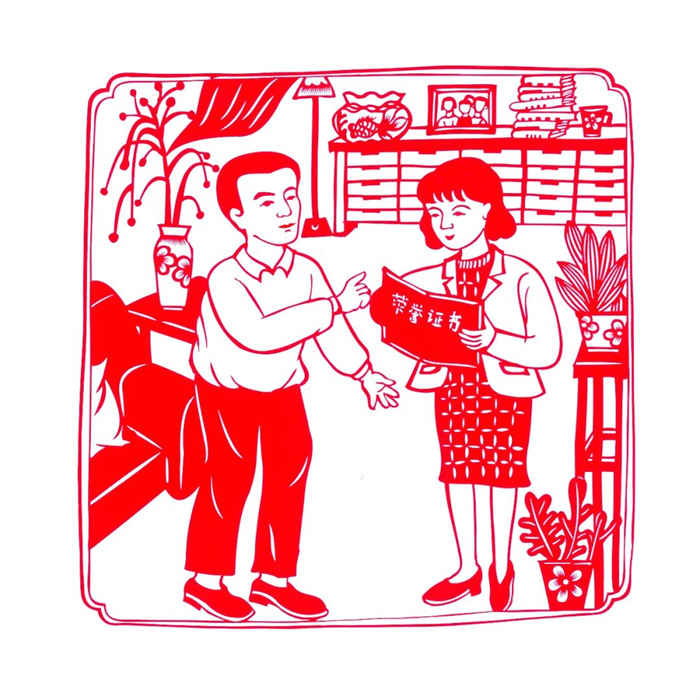 本系列作品將內容和形式進行較好的結合,采用剪紙連環畫的手法將人物故事一一呈現,整體風格細膩,線條流暢。局部以花卉紋樣做裝飾,使作品充實豐富,疏密有致。