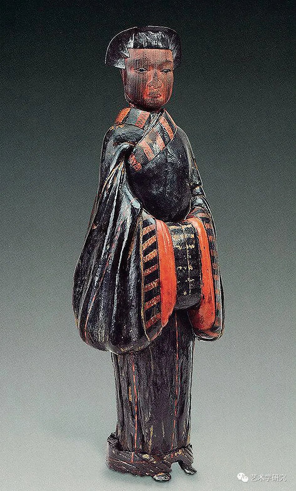 圖9 戰國漆木俑,圖片引自湖北省文物局、湖北省南水北調管理局編著:《南水北調中線一期工程文物保護項目·湖北省考古發掘報告·第6號:沙洋塌冢楚墓》,科學出版社2017年版。