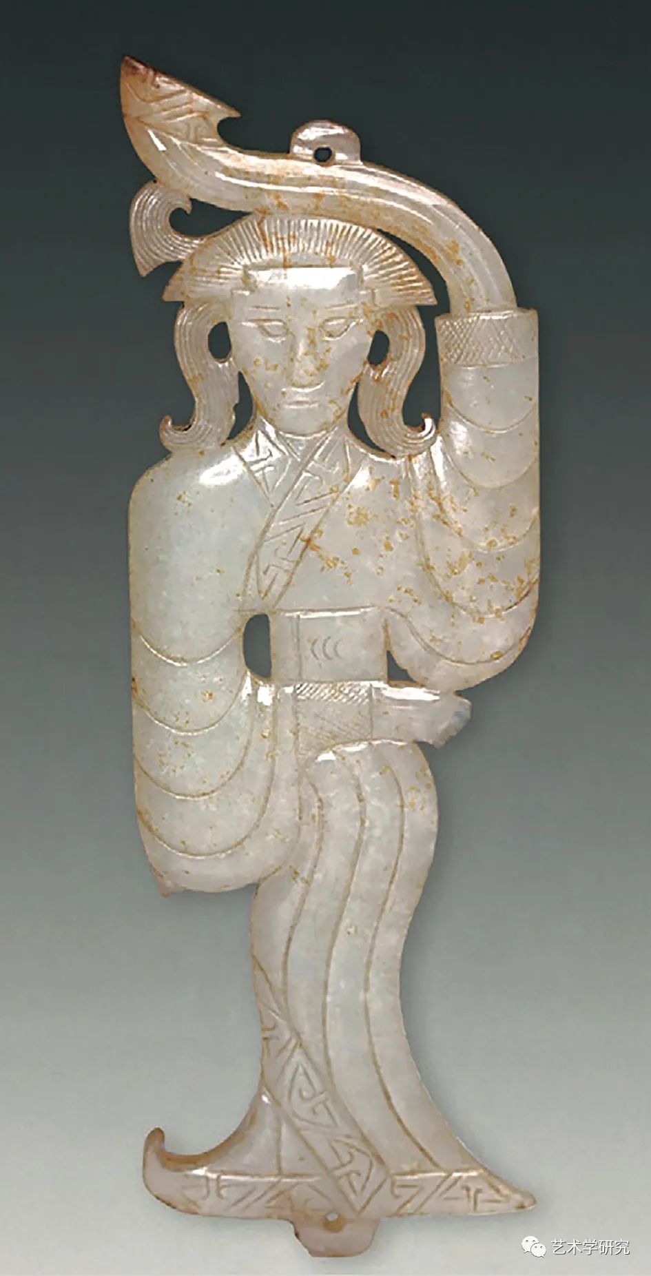 圖1 海昏侯墓出土的玉舞人,圖片引自江西省文物考古研究院、廈門大學歷史系:《江西南昌西漢海昏侯劉賀墓出土玉器》,《文物》2018年第11期。