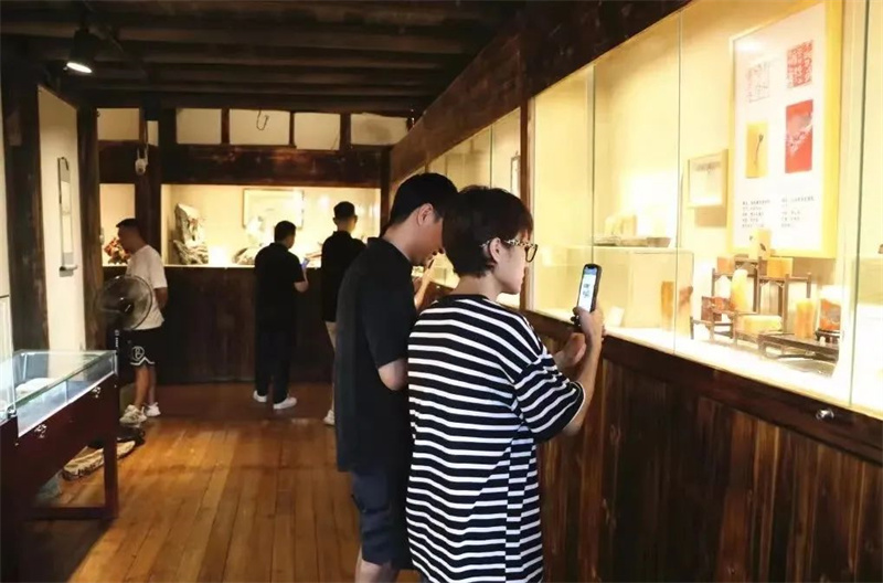 國慶前夕,“千年古邑 一生長樂”——壽山石文化藝術精品展暨中國工藝美術大師劉傳斌傳承展,在福州市長樂區和平街歷史文化街區天工藝術館開展,近日來此觀展的游客絡繹不絕。