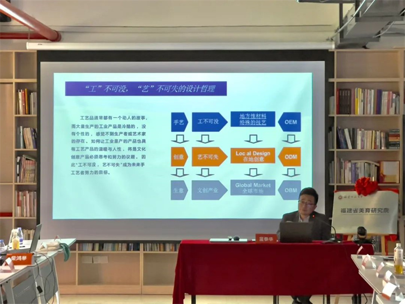 國家藝術基金2023年度藝術人才培訓資助項目《新時代美術館公共美育人才培養》在福建師范大學美育研究中心展開。福建師范大學美術學院藍泰華教授應邀為項目學員展開了主題為《“工不可沒、藝不可失”—開啟非遺的美好生活》的專題講座。