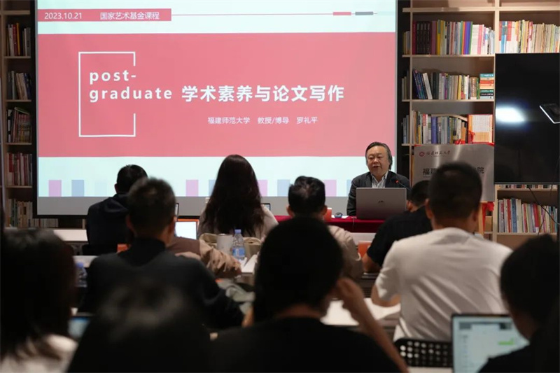 2023年10月21日,國家藝術(shù)基金2023年度藝術(shù)人才培訓(xùn)資助項(xiàng)目“新時代美術(shù)館公共美育人才培養(yǎng)”在福建省美育研究院進(jìn)行。福建師范大學(xué)美術(shù)學(xué)院院長、博士生導(dǎo)師羅禮平教授為全體學(xué)員做題為《學(xué)術(shù)素養(yǎng)與論文寫作》的學(xué)術(shù)講座。項(xiàng)目負(fù)責(zé)人、福建省美育研究院執(zhí)行院長胡泊教授主持講座。