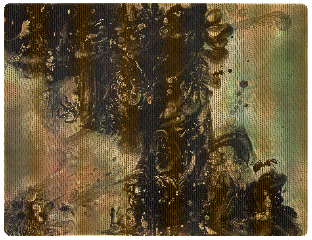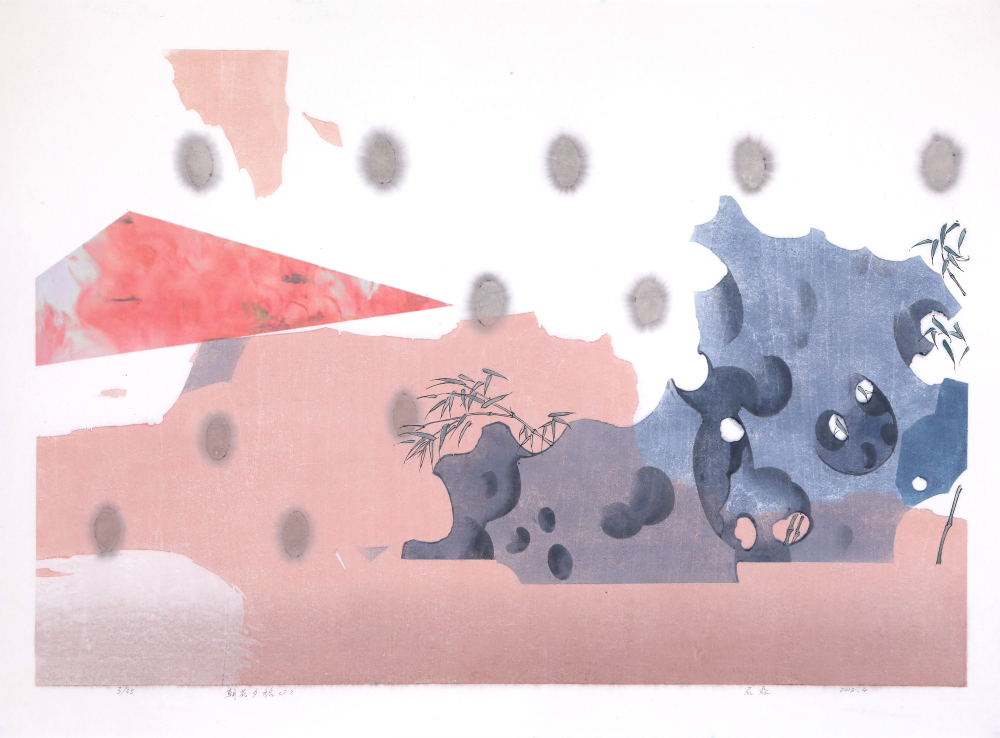 這三位版畫家都在天津美術學院的版畫專業任教多年,對版畫的固有傳統有著深刻的理解,同時又都具有不斷拓展的實驗精神。因此,在他們的作品中,既能看到對于版畫技藝的熟練把握,又有出于各自的表現需要,嘗試著新的方法,新的構成方式的運用。范敏多年從事銅版畫的創作研究,近些年也利用平版技術進行創作。他的作品色調凝重,昭示著時空輪回中的生命體驗。張莞則從成品圖像入手,借助于綜合版的多種手段嘗試,形成富有哲理性思考的印跡,且有女性輕柔的藝術特征。石磊鐘情于中國傳統水印木刻,卻與傳統樣式相去甚遠,以輕松愉快的樣式傳達出年輕人的生活心態。應該說,他們三位以不同的藝術話語方式詮釋出自己的生命體驗和詩性本身豐富多樣的精神內涵。