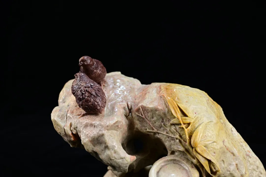 文人畫強調筆墨的運用,筆觸或剛勁有力,或柔美流暢,墨色濃淡干濕變化豐富,形成了一種獨特的筆墨韻味,體現了畫家的個性與情感。陳禮忠的石雕作品亦是如此,其作品所選石材,既有粗獷質樸的,也不乏細膩溫婉的;線條運用上,時而圓潤流暢,宛如春水繞石,時而遒勁剛健,盡顯金石之氣。他巧妙依據每塊石材的獨特紋理與特性,運刀或深或淺,使得作品之中,既有渾厚沉穩之處,彰顯力量之美,又不乏輕盈靈動之筆,透露出細膩與雅致。