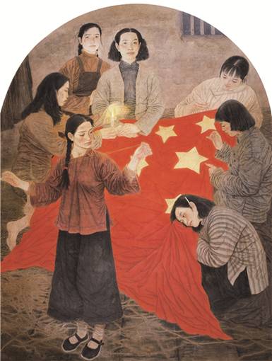 ——鮮活的藝術感染力。在各種文藝形式中,美術作品憑借著直觀性的特點,成為與人民群眾聯系最為廣泛的藝術形式之一。紅色主題美術作品通過濃厚的顏色運用、巧妙的構圖布局以及深刻的角色塑造,不僅生動展現了積極向上的革命樂觀主義精神,還描繪出革命先烈為革命事業慷慨就義的崇高品格。這些作品根植于現實主義的深厚土壤,始終堅持以最生動、最直觀的藝術語言,觸動觀眾的心靈,使他們在觀賞中自然而然地接受并深深喜愛上這些充滿力量的紅色文化瑰寶。如閩籍畫家盧志強教授創作的中國畫《繡紅旗》,以鮮艷的五星紅旗、微弱的燭光、昏暗的牢室,生動表現了江姐和她的戰友在新中國即將成立時在渣滓洞里繡紅旗的那感人的一刻,作品突破了模式化的束縛,充分表現了革命先輩憧憬美好新中國、矢志不渝的堅貞情操。