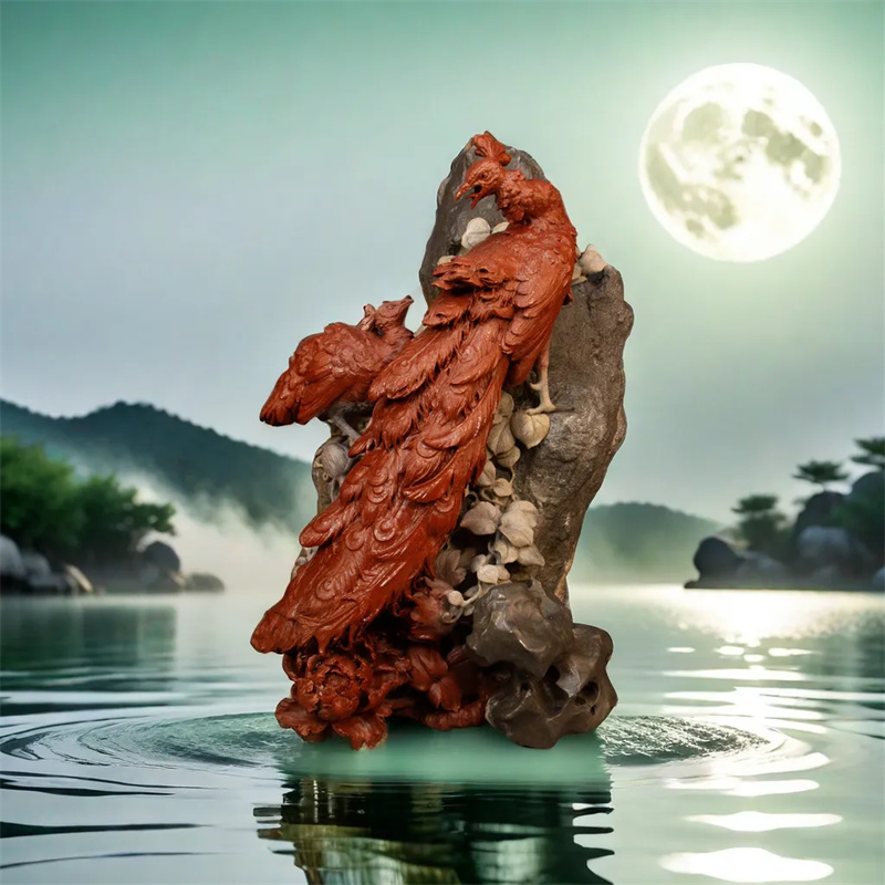 陳禮忠壽山石雕作品《牡丹孔雀圖》效果圖