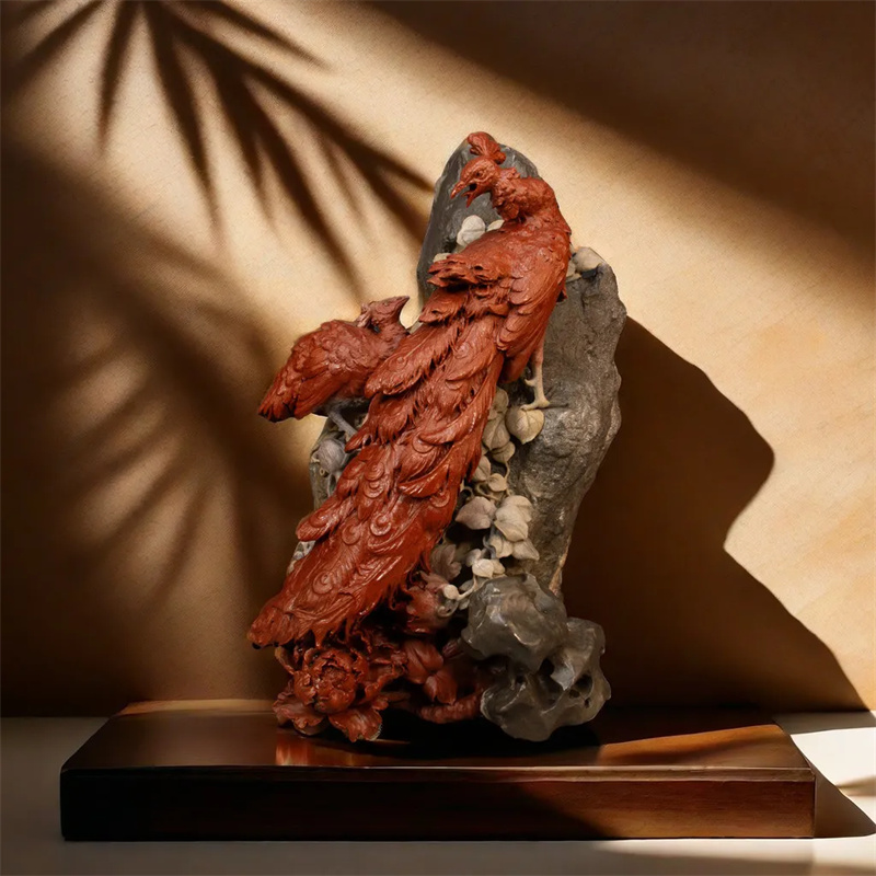 陳禮忠壽山石雕作品《牡丹孔雀圖》