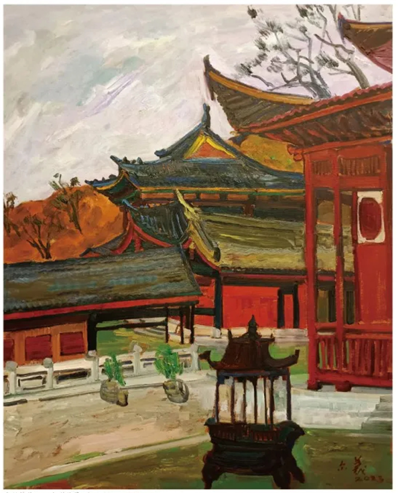 《海絲情緣——古剎秋景》 油畫 80cmx100cm