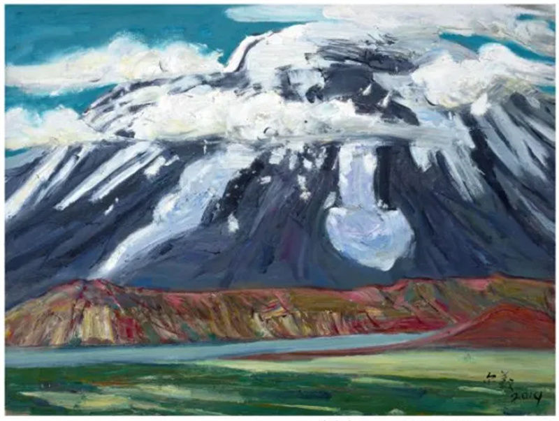 《旖旎邊疆——雪山云翻》 油畫 100cmx75cm