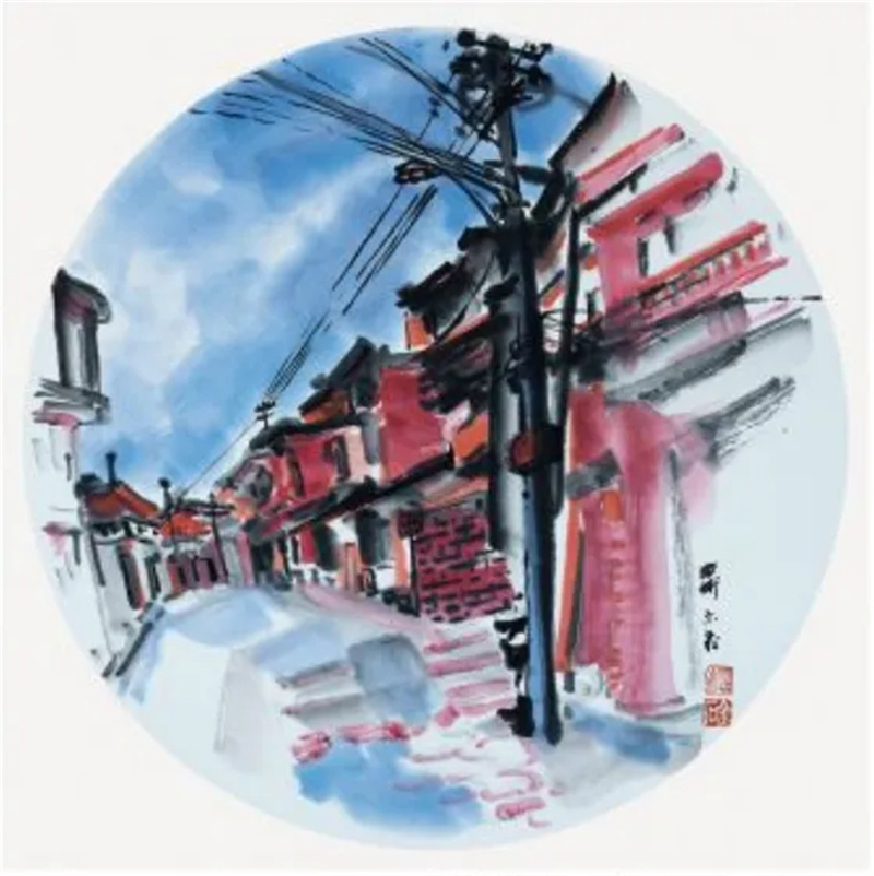 “泰山不讓土壤,故能成其大;河海不擇細流,故能就其深”。爾義兄雖然是油畫專業出生,卻沒有畫種畫派的門戶之見。來到東南工作生活上,或許是受東南閩文化的熏陶,他悄悄走入彩墨世界,用一種具有時代感的筆墨語言,重新與中國傳統繪畫進行對話,以一種淡泊的文化情思來拓展人生和藝術的另一境。其彩墨作品多為小幅扇面或冊頁,多為閑暇之余的信手揮毫,顯得自由與灑脫。就像是閩南的下午茶,用休閑時光泡出了歲月的愜意。