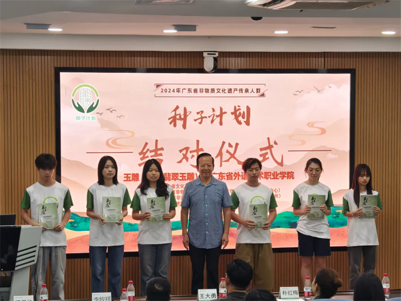 今年6月中旬-7月,2024年“廣東省非物質文化遺產傳承人群種子計劃”(以下簡稱“種子計劃”)先后走進廣東輕工職業技術大學、廣東省外語藝術職業學院和廣東文藝職業學院開展“種子計劃”校園宣講會暨“非遺進校園”講座。玉雕(陽美翡翠玉雕)國家級代表性傳承人洪榮輝、石灣陶塑技藝市級代表性傳承人黃志偉、粵繡(廣繡)市級代表性傳承人王新元、佛山木版年畫市級代表性傳承人劉鐘萍分別走進校園進行授課分享,并公開招募非遺傳承種子學生,得到青年學生們的踴躍參與。