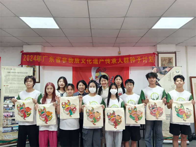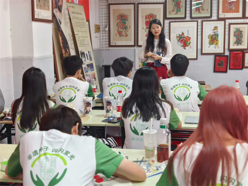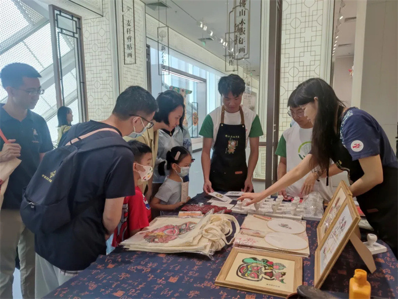 ▲在佛山木版年畫基地和白鵝潭大灣區藝術中心,廣東輕工職業技術大學和華南農業大學學生通過“基地學習+練攤實踐”系統了解佛山木版年畫,并在實踐中體悟和掌握非遺本領;