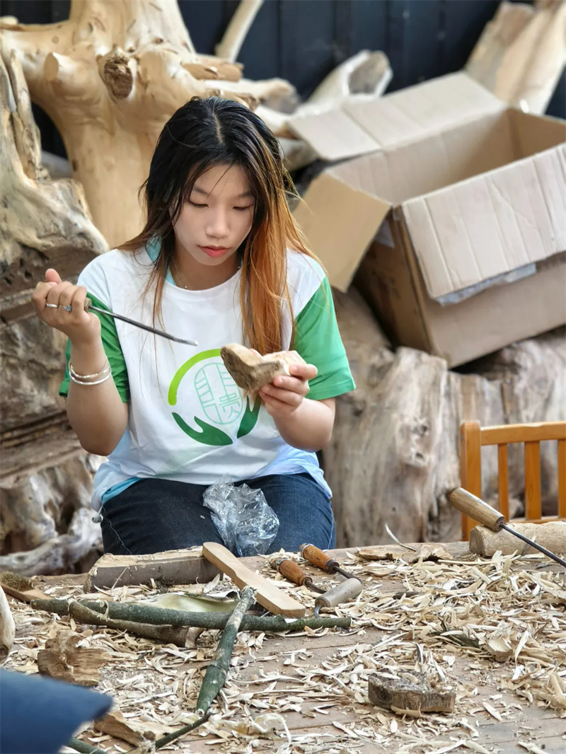 ▲在東莞莞香非遺保護園,東莞理工學院莞香文化社會實踐隊的學生在專業技師帶領下,親身參與莞香制作過程,深入領略莞香的獨特魅力……