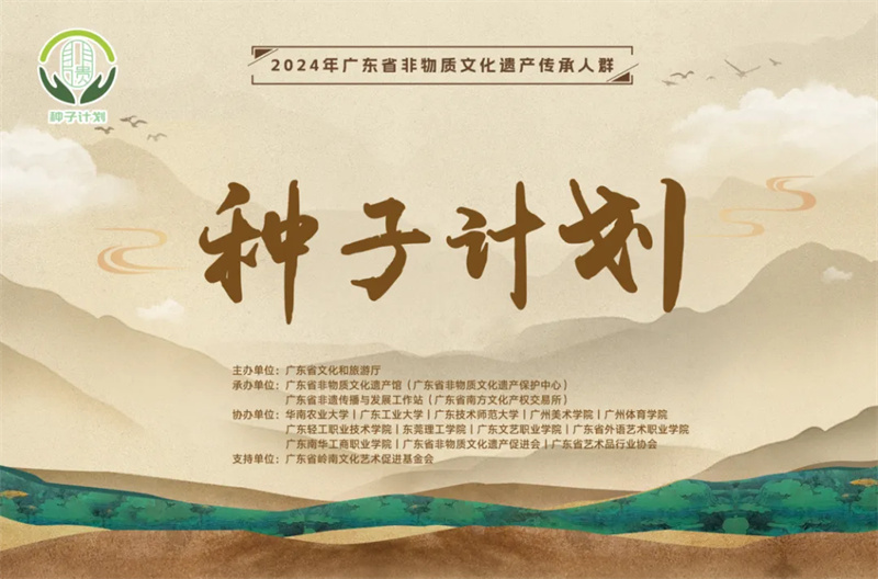 2024年“廣東省非物質文化遺產傳承人群種子計劃”由廣東省文化和旅游廳主辦,廣東省非物質文化遺產館(廣東省非物質文化遺產保護中心)、廣東省非遺傳播與發展工作站(廣東省南方文化產權交易所)承辦,廣東省嶺南文化藝術促進基金會支持,將于6月-12月期間,圍繞傳統香制作技藝(莞香制作技藝)、香云紗染整技藝、廣彩瓷燒制技藝、石灣陶塑技藝、茶藝(潮州工夫茶藝)、獅舞(廣東醒獅)、英歌(普寧英歌)、北勝蔡李佛拳、粵繡(廣繡)、剪紙(廣東剪紙)、玉雕(陽美翡翠玉雕)、佛山木版年畫等12項國家級非遺代表性項目,開展非遺講座、研學、實地教學、傳承交流會及成果展等一系列豐富多彩的活動。