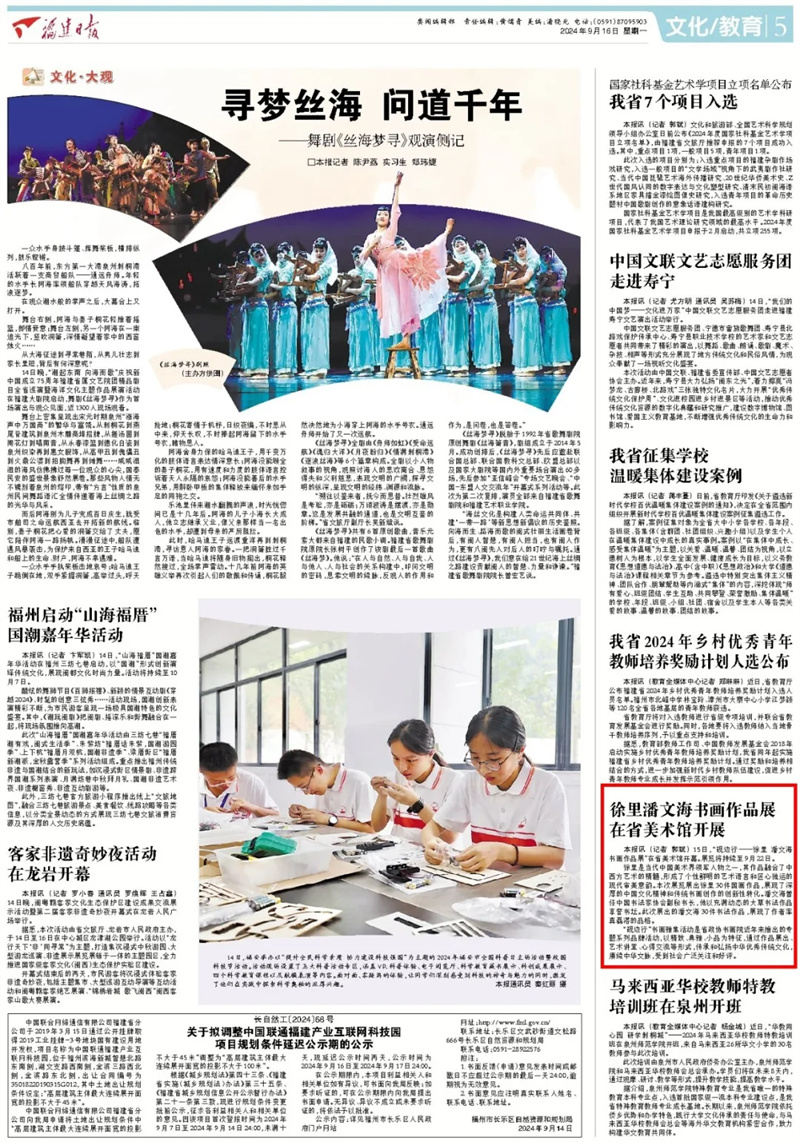 9月15日,“硯邊行——徐里 潘文海書畫作品展”在省美術館開幕。展覽將持續至9月22日。