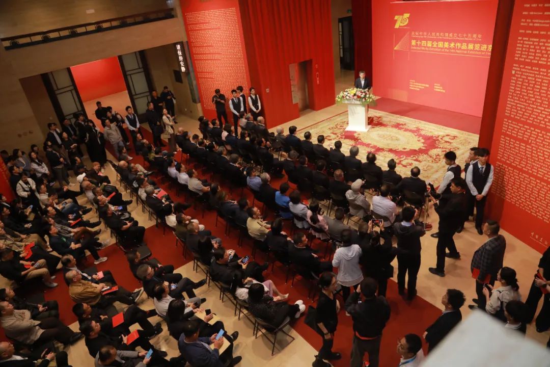 2024年9月27日上午,由文化和旅游部、中國文聯、中國美協共同主辦,中國美術館、中國國家博物館承辦的“慶祝中華人民共和國成立75周年——第十四屆全國美術作品展覽進京作品展”在中國美術館開幕。中央宣傳部副部長、文化和旅游部部長孫業禮出席開幕式并宣布展覽開幕。中國文聯黨組書記、副主席李屹,中國作協黨組書記、副主席張宏森,文化和旅游部黨組成員、副部長盧映川,中國文聯黨組成員、副主席諸迪,全國政協副秘書長、中國美術館館長吳為山,中國國家博物館館長高政,中國文聯黨組成員、書記處書記、中國美協副主席高世名,中國文聯黨組成員、書記處書記謝力,中國美協主席范迪安,中宣部文藝局局長陳名杰,中國美協分黨組書記、駐會副主席馬鋒輝,中央美術學院院長林茂,文化和旅游部辦公廳副主任張劍,財務司司長王明亮,藝術司司長明文軍、副司長何亞文,中國文聯辦公廳副主任胡英軍,機關黨委副書記、機關紀委書記鄭旭東,國際聯絡部主任于海琳,理論研究室主任周由強,離退休干部局副局長李華,軍委政治工作部宣傳局文化環境建設保障室主任馬登東,中國美協副主席王來文、劉萬鳴、林藍、龐茂琨、賈廣健,中國美協分黨組成員、秘書長王平、副秘書長章云,中國美術館黨委書記安遠遠、副館長潘義奎,老藝術家代表靳尚誼、孫景波、代大權等出席開幕式,李屹、盧映川、吳為山、范迪安致辭,諸迪主持開幕式。