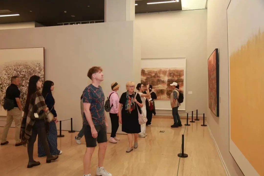 領導嘉賓參觀展覽本屆全國美展堅持以習近平文化思想為指引,緊扣慶祝中華人民共和國成立75周年和習近平總書記主持召開文藝工作座談會并發表重要講話10周年的重大時間節點、重大主題,充分展示近五年來我國美術事業發展新成果新成就,多彩呈現中國式現代化新面貌新氣象。參加本屆全國美展特別是進京展的美術工作者,堅持以人民為中心的創作導向,扎根人民火熱生活,緊跟時代奮進步伐,熱切回應群眾文化期盼,聚焦中國式現代化、全面小康、鄉村振興、文化傳承、科技創新、生態環保、粵港澳大灣區建設、一帶一路、文明交流互鑒等重大主題,以強烈的質量意識、開闊的創作視野、多樣的風格樣式,潛心創作、精益求精,以小切口反映大主題、以小人物折射大時代、以小畫面展現大氣象,在自覺賡續千年文脈中弘揚中華美學精神,在藝術科技交相輝映中推進創新創造,濃墨重彩地描繪了中華民族偉大復興新征程的壯美篇章,展現出當前美術界團結一心、守正創新、奮發有為的嶄新面貌。
