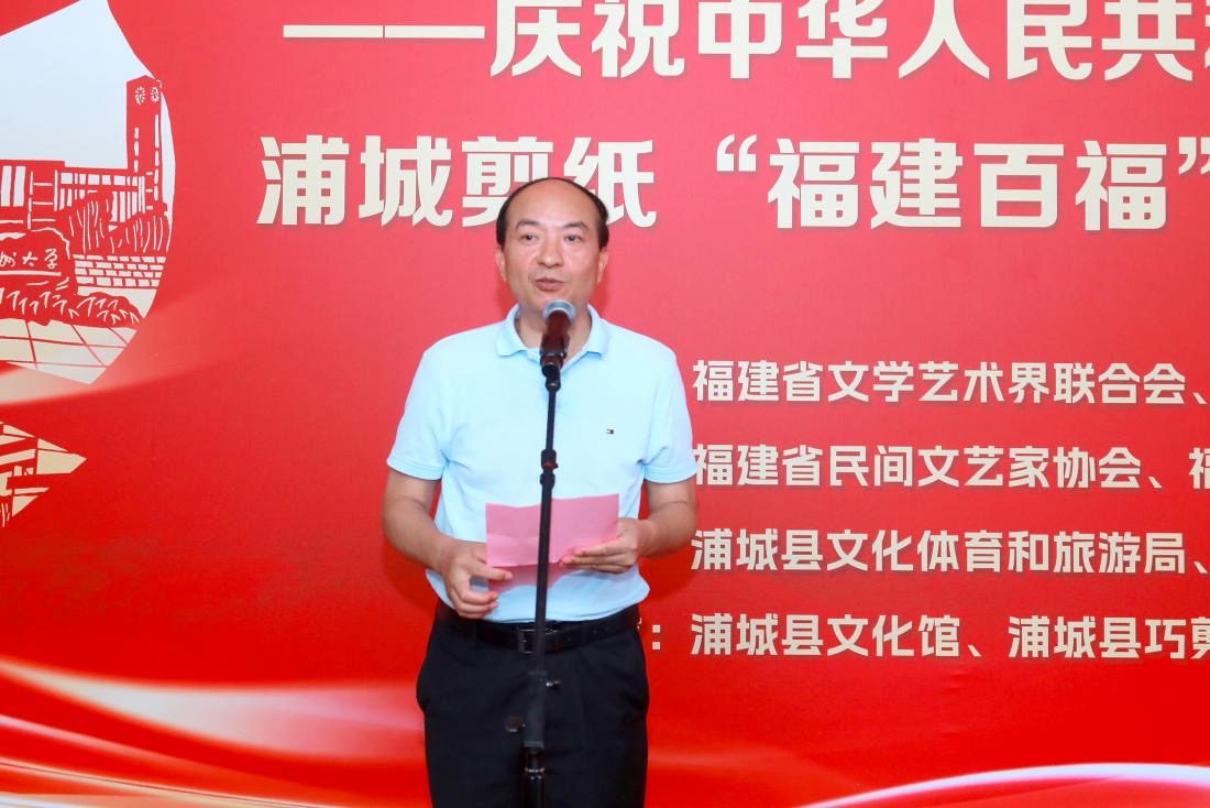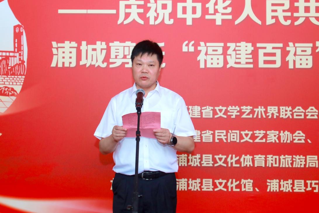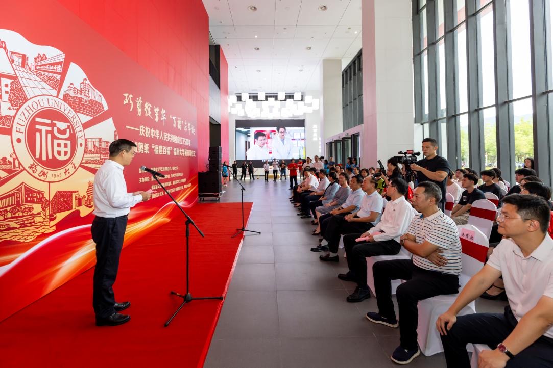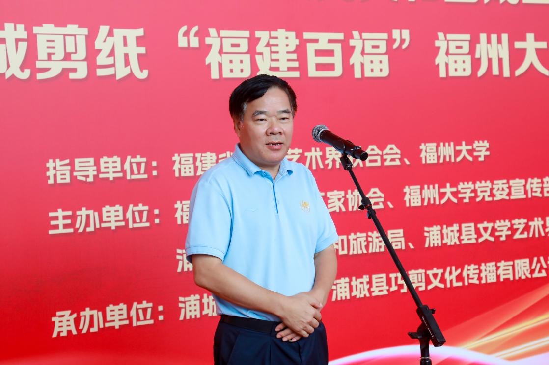 開幕儀式上,福州大學黨委宣傳部部長施衛華擔任主持人,他熱情洋溢地介紹了來賓并致歡迎辭,指出浦城剪紙“福建百福”展在福大展出,獻禮祖國75周年華誕,珠聯璧合,意義非凡。