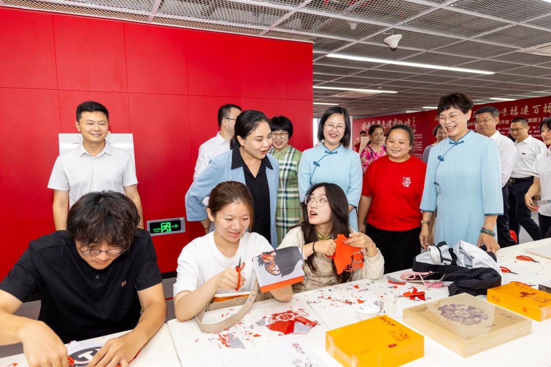 隨后,領導、嘉賓、師生們至晉江樓19層參觀“福建百福”福州大學展并體驗非遺剪紙項目。現場氛圍熱烈,師生們切身體驗到了浦城剪紙技藝的魅力,爭相將剪好的圖案與校長吳明紅院士合影,一起慶祝祖國75周年的生日,“福建百福”福州大學展開幕儀式圓滿結束。