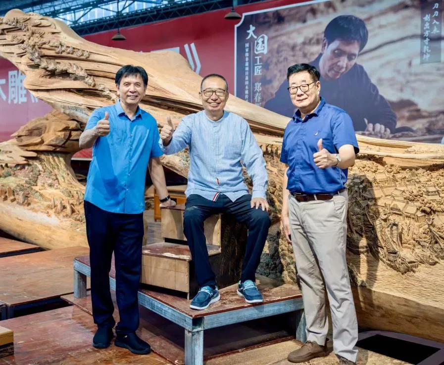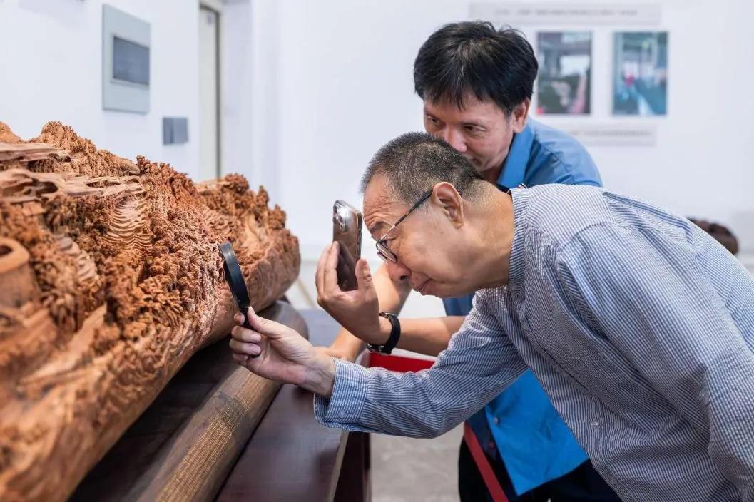 在莆田市春暉雕刻藝術館,潘魯生深入了解莆田木雕技藝。春暉木雕藝術館是莆田首家民辦木雕博物館,由大國工匠、中國工藝美術大師鄭春輝創建,長期向社會公益展示,展出作品有大型木雕作品《清明上河圖》《千里江山圖》《閩鄉多錦繡》以及上百件國家級、省部級獲獎作品。